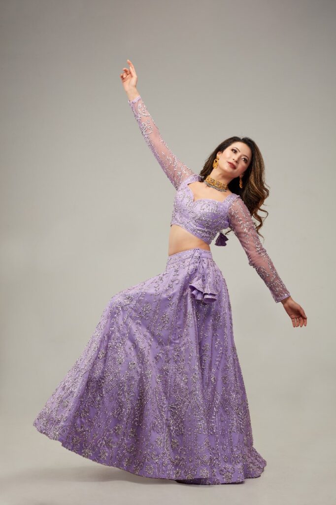 लैवेन्डर रङ्गको लेहेङ्गा ब्राइडल वेयरका लागि फरक छनोट हो । अहिले रातोबाहेक पनि दुलहीले पार्टीमा अरू कलरका लेहेङ्गा लगाउन खोज्छन् । यसमा जर्कन इम्ब्रोइडरी गरिएको छ, जसमा मसिना धागो तथा चम्किला धातुका कलात्मक डिजाइन समेटिएको छ ।