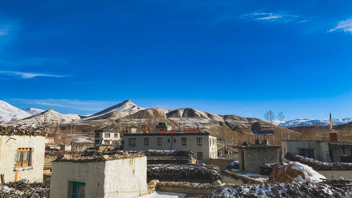 हिउँ परेपछि मुस्ताङ एक चित्रको संसारमा रूपान्तरण हुन्छ । पुराना घरका छाना र काँचो बाटोहरू सबै सेतो ओढनाले ढाकिन्छन्। बिहानको घाम झुल्किँदा त्यो हिउँमा परेका सुनौला किरणहरू चम्किन्छन् , जसले मुस्ताङलाई कुनै परीकथाको राज्यजस्तो देखाउँछ।