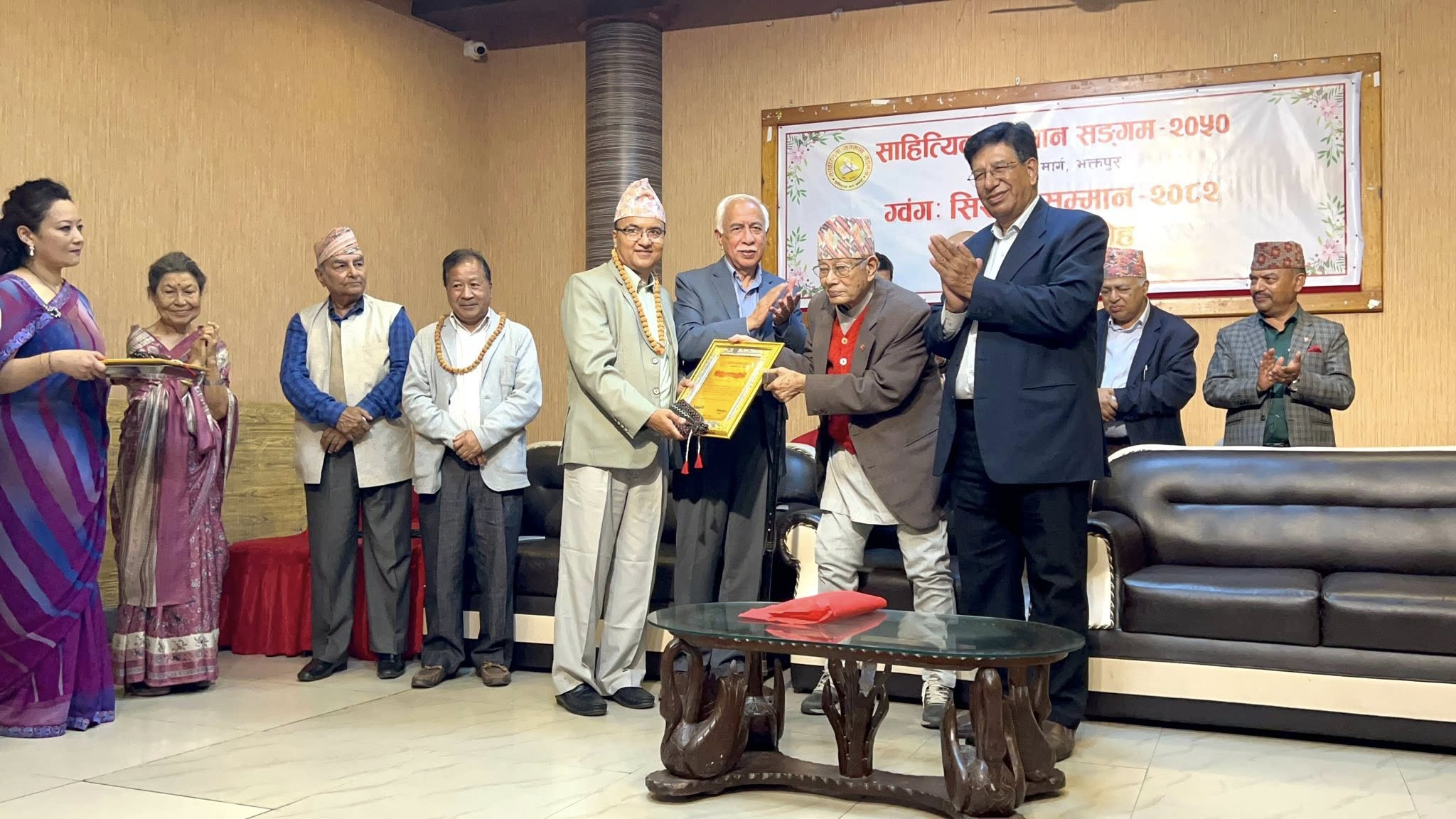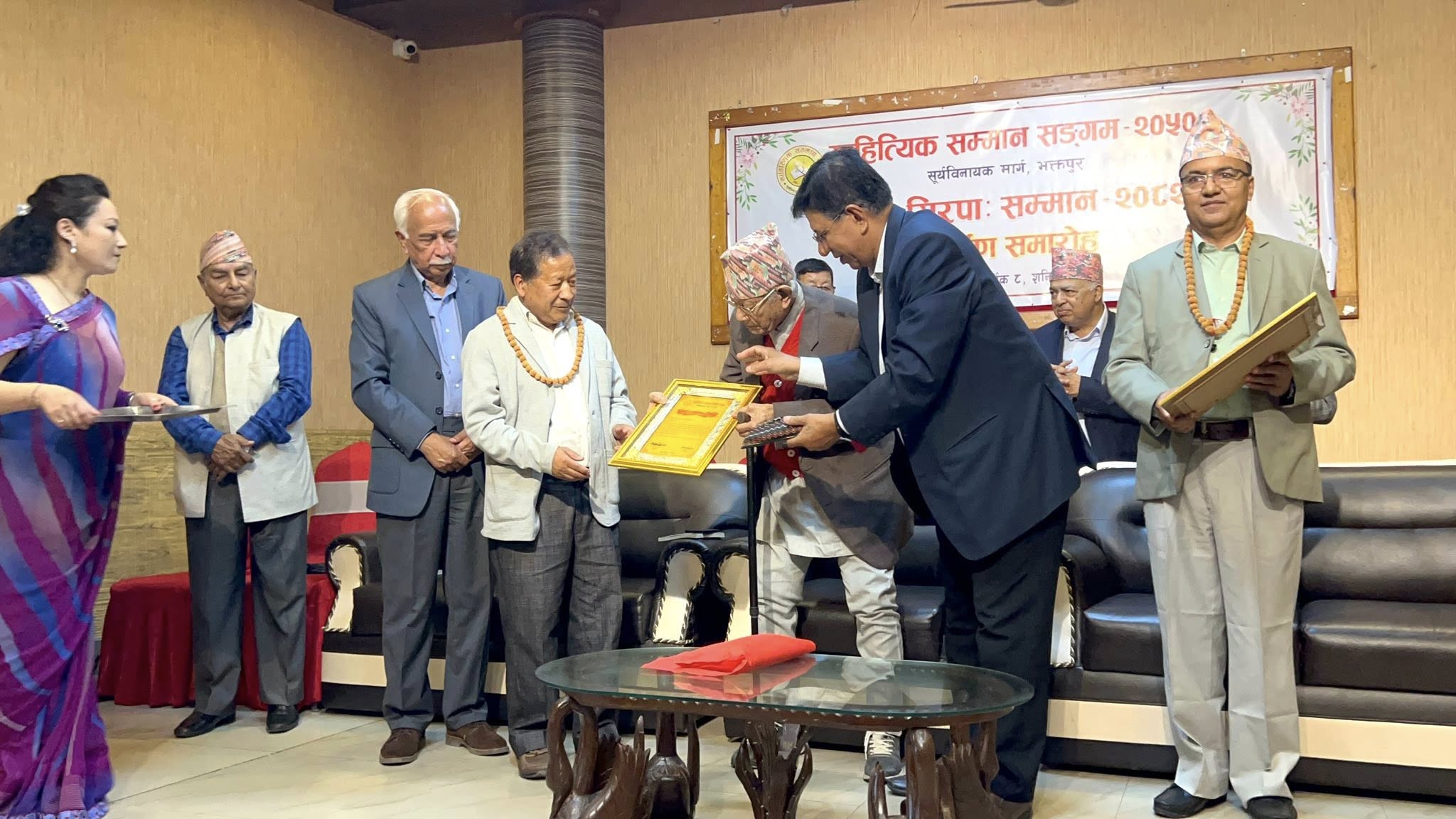 ध्रुव मधिकर्मी र लक्ष्मणप्रसाद गौतमलाई ग्वंगः सिरपाः सम्मान