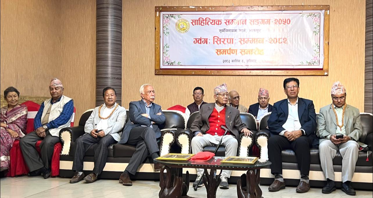 साहित्यकार ध्रुव मधिकर्मी र लक्ष्मणप्रसाद गौतमलाई यस वर्षको ग्वंगः सिरपाः सम्मान प्रदान गरिएको छ। साहित्यिक सम्मान सङ्गमको आयोजनामा भक्तपुरमा सम्पन्न कार्यक्रममा दाता तथा वरिष्ठ निबन्धकार तेजेश्वरबाबु ग्वंगःले जनही पचास हजार पाँच रुपैयाँसहित सम्मान प्रदान गरे। प्रमुख अतिथि प्राध्यापक केदारभक्त माथेमाले दुबै स्रष्टालाई सम्मानपत्र हस्तान्तरण गरे।