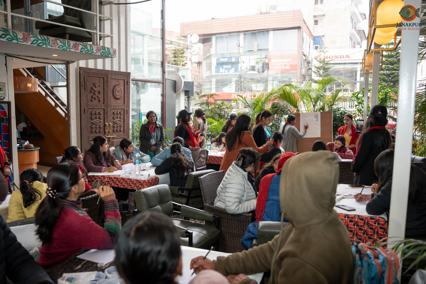 मिथिला कलाप्रति रुचि राख्ने युवा, महिला तथा बालबालिकालाई लक्षित गरी आयोजित तालिमका सहभागीलाई आधारभूत चित्रकला सीप, डिजाइन र रङ संयोजनको प्रशिक्षण दिइने तालिमका प्रशिक्षक प्रतिभा मिश्रले जानकारी दिइन् ।