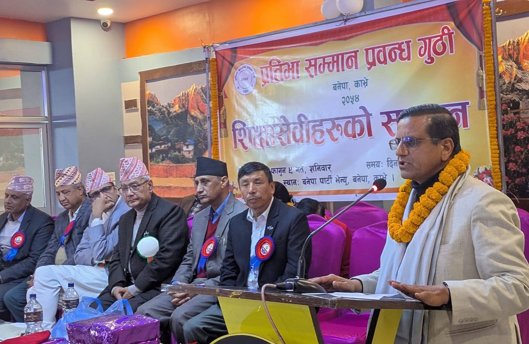 प्रतिभा सम्मान प्रवन्ध गुठी, बनेपाले शिक्षा क्षेत्रमा योगदान पुर्याउँदै आएका ६ जना शिक्षासेवीलाई सम्मान गरेको छ। शनिबार आयोजित एक विशेष कार्यक्रममा जिल्लाका पाँच जना तथा जिल्लामा रही सेवा प्रदान गर्ने एक जना शिक्षासेवीलाई नगद १५ हजार रुपैयाँसहित सम्मान गरिएको हो।